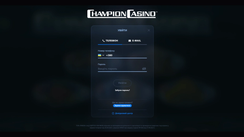 Вхід з офіційного сайту Сhampioncasino – покрокова інструкція